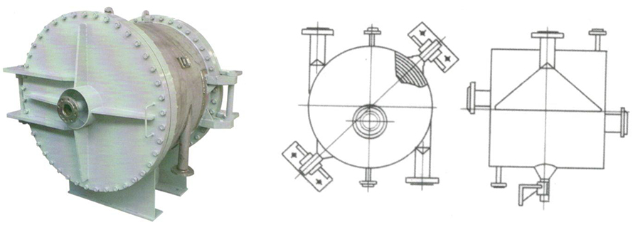 2、在殼體上的接管采用切向結(jié)構(gòu),局部阻力小,由于螺旋通道的曲率是均勻的,液體在設(shè)備內(nèi)流動(dòng)沒有大的轉(zhuǎn)向,總的阻力小,因而可提高設(shè)計(jì)流速使之具備較高的傳熱能力。